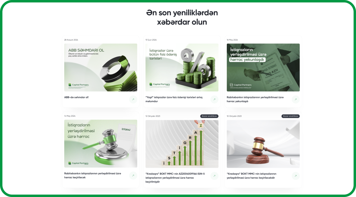 Saytın müasir və funksional strukturu nəticəsində istifadəçi təcrübəsi yüksəldi, məlumat axını asanlaşdı və şirkətin investisiya potensialı daha aydın şəkildə təqdim olundu.