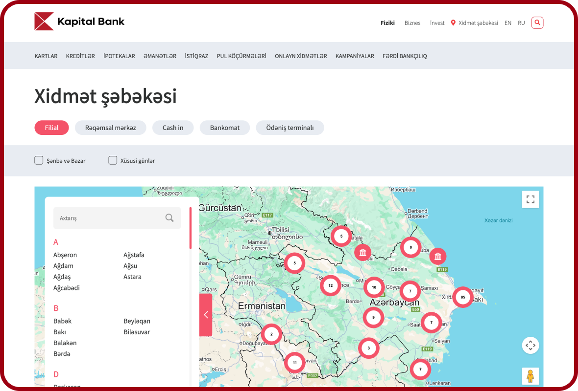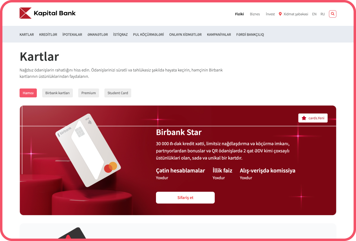 kapitalbank.az saytının istifadəyə verilməsi müştərilərin bank xidmətlərini rəqəmsal platforma üzərindən asan və problemsiz şəkildə idarə etməsinə gətirib çıxardı. Bankın xidmət spektri — kreditlərdən depozitlərə, kart sifarişlərindən onlayn ödəniş sistemlərinə qədər — vahid platforma vasitəsilə təqdim edilir ki, bu da müştəri məmnuniyyətini və xidmətlərin əlçatanlığını artırır.